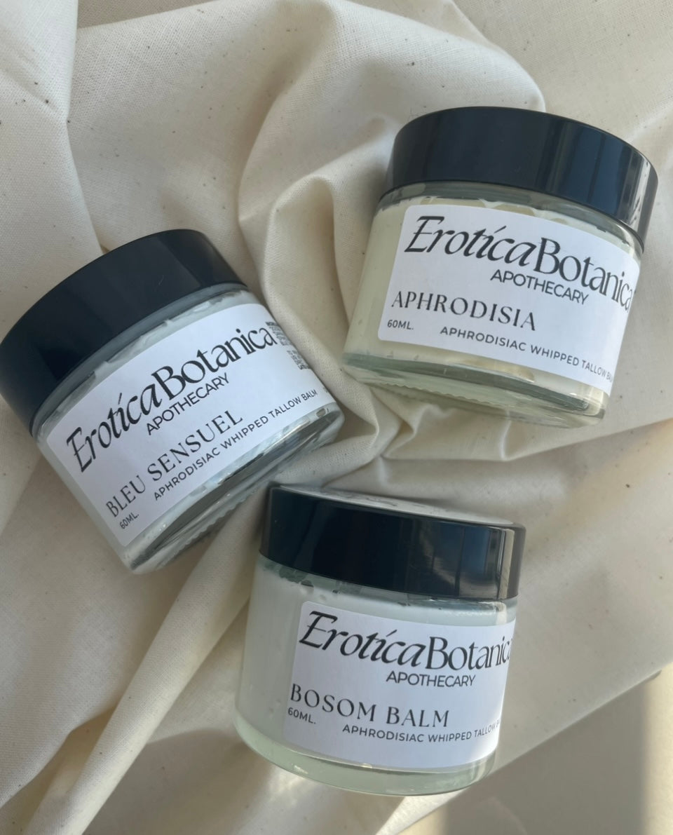 Welcome to the sensual world of Erotica Botanica Apothecary, where herbal wisdom meets erotic wellness and science. From potent aphrodisiac-infused tinctures to luxurious intimacy balms, our handcrafted creations are formulated to awaken your senses, nourish your body, enhance and celebrate your pleasure. Rooted in clinical herbalism, our apothecary is brimming with delights and debaucherous goodies inviting you to explore your own erotic nature.